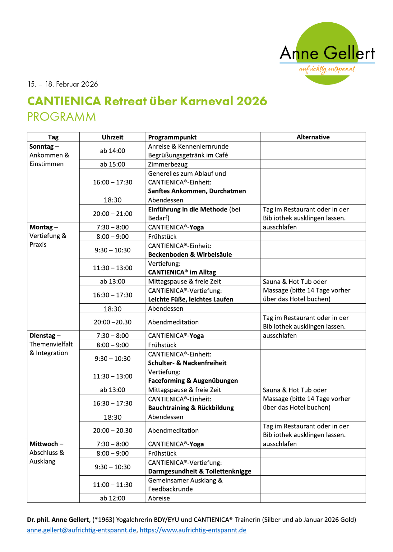 | 4 Tage CANTIENICA® und CANTIENICA®-Yoga |